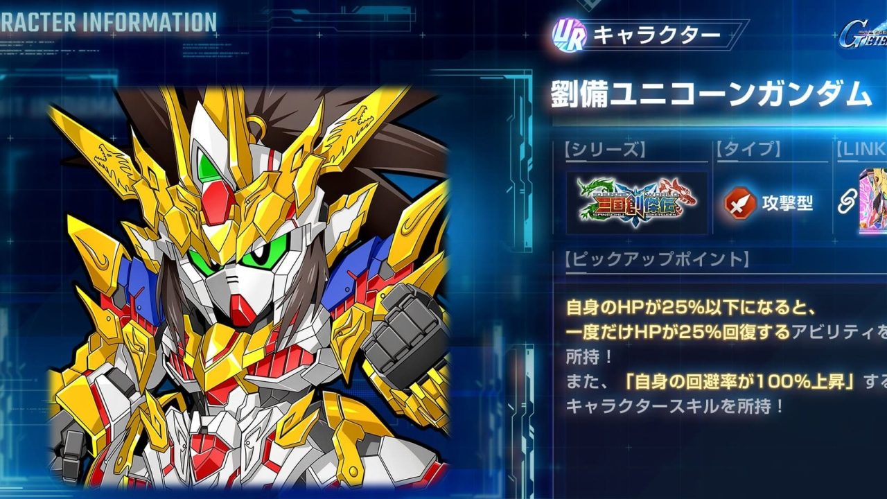 劉備はマスリでハマるととんでも火力だから強いけど手持ちのURパイロットが揃ってないなら他を狙った方がいい